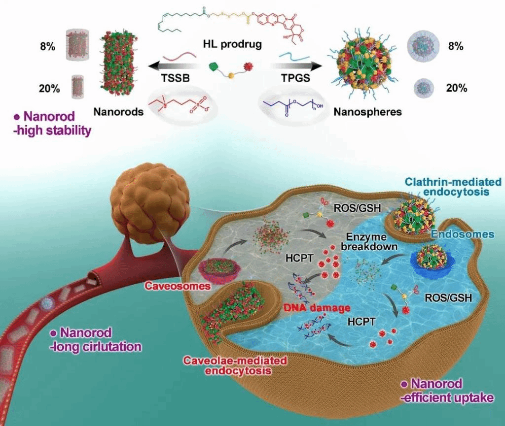 癌症是人类健康的首要威胁之一。化疗药仍然是当前临床上癌症治疗的首选,但是化疗药的体内非特异性分布导致其毒副作用十分严重。面对这样的困境,前药策略和纳米药物递送系统作为一种新的手段被应用于化疗药的高效递送。但是,前药在体内仍然会被快速清除,而依靠非共价作用物理包载的传统纳米药物递送系统,由于药物和载体材料亲和作用差,存在载药量低和药物泄露等问题。而基于前药分子自组装得到的前药自组装纳米药物递送系统被认为是一个极具应用前景的抗肿瘤药物递送平台。